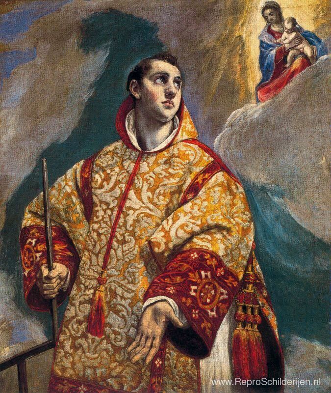Wij bieden u een ambachtelijke reproductie op doek van het beroemde schilderij 'Verschijning van de Maagd aan St. Lawrence' van El Greco, afkomstig uit het Reproductiemuseum.