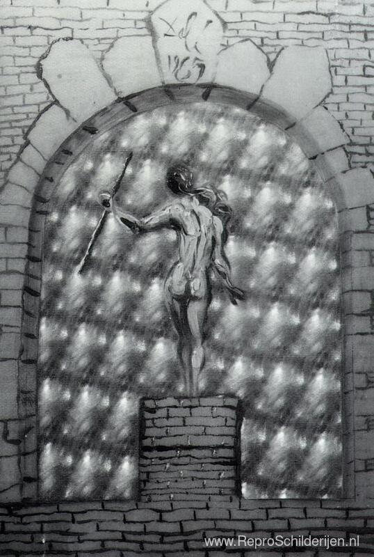 Wij bieden u een ambachtelijke reproductie op doek van het beroemde schilderij 'Zonder titel (St. John van achteren)' van Salvador Dali, afkomstig uit het Reproductiemuseum.