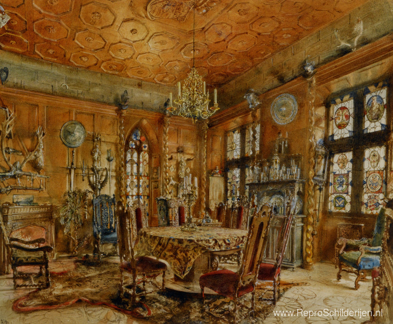 Wij bieden u een ambachtelijke reproductie op doek van het beroemde schilderij 'Interieur van kasteelIn renaissancestijl' van Rudolf von Alt, afkomstig uit het Reproductiemuseum.