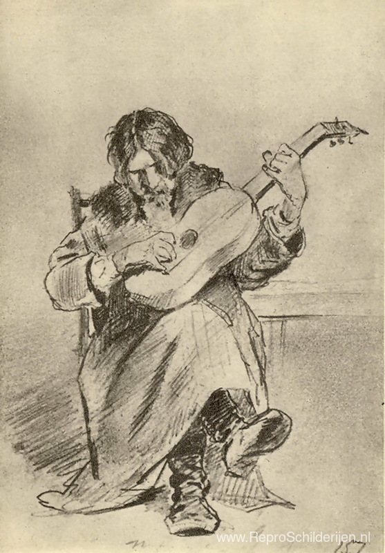 Wij bieden u een ambachtelijke reproductie op doek van het beroemde schilderij 'Gitarist-bach' van Vasily Perov, afkomstig uit het Reproductiemuseum.