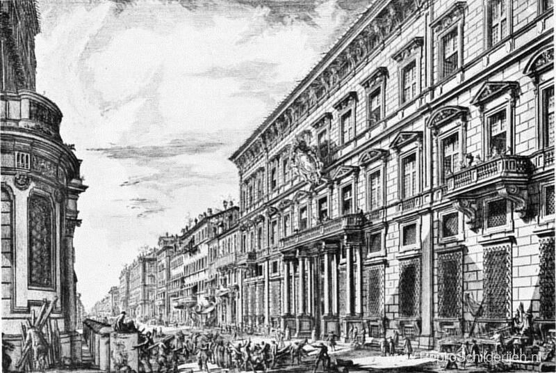 Wij bieden u een ambachtelijke reproductie op doek van het beroemde schilderij 'Het Corso in Rome' van Giovanni Battista Piranesi, afkomstig uit het Reproductiemuseum.