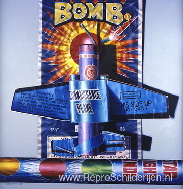 Wij bieden u een ambachtelijke reproductie op doek van het beroemde schilderij 'Bom' van Glennray Tutor, afkomstig uit het Reproductiemuseum.