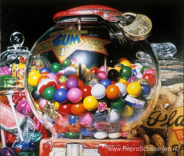 Wij bieden u een ambachtelijke reproductie op doek van het beroemde schilderij 'Laat een cent in de gleuf vallen' van Charles Bell, afkomstig uit het Reproductiemuseum.