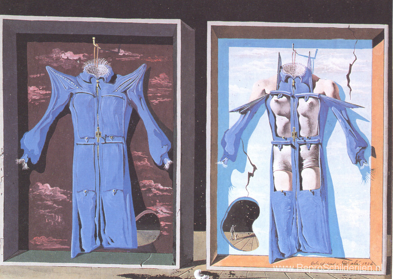 Wij bieden u een ambachtelijke reproductie op doek van het beroemde schilderij 'Nacht- en dagkleding van het lichaam' van Salvador Dali, afkomstig uit het Reproductiemuseum.