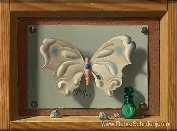 Wij bieden u een ambachtelijke reproductie op doek van het beroemde schilderij 'Papillon' van Pierre Roy, afkomstig uit het Reproductiemuseum.