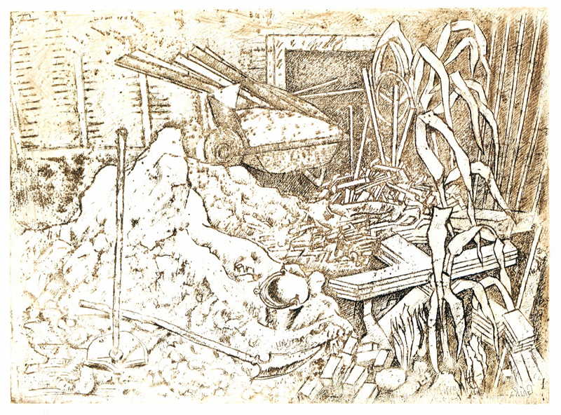 Wij bieden u een ambachtelijke reproductie op doek van het beroemde schilderij 'Verlaten gereedschap' van Nikos Hadjikyriakos-Ghikas, afkomstig uit het Reproductiemuseum.