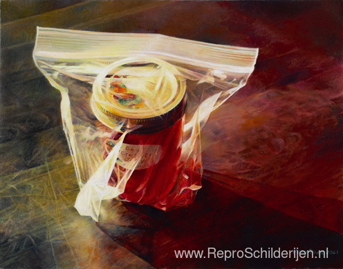 Wij bieden u een ambachtelijke reproductie op doek van het beroemde schilderij 'Voorbeeld uit een andere tijd' van Mary Pratt, afkomstig uit het Reproductiemuseum.