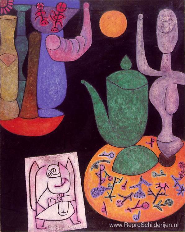 Wij bieden u een ambachtelijke reproductie op doek van het beroemde schilderij 'Zonder titel (Stilleven)' van Paul Klee, afkomstig uit het Reproductiemuseum.