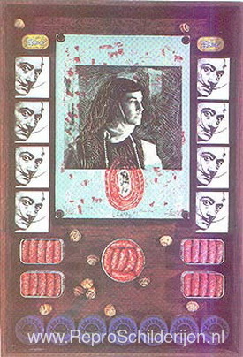 Wij bieden u een ambachtelijke reproductie op doek van het beroemde schilderij 'Edna de beroemde' van Alberto Gironella, afkomstig uit het Reproductiemuseum.