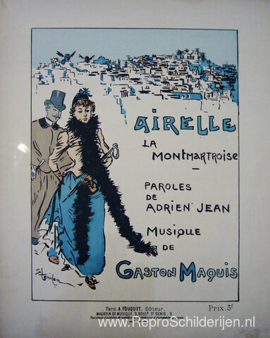 Wij bieden u een ambachtelijke reproductie op doek van het beroemde schilderij 'Airelle La Montmartroise' van Theophile Steinlen, afkomstig uit het Reproductiemuseum.