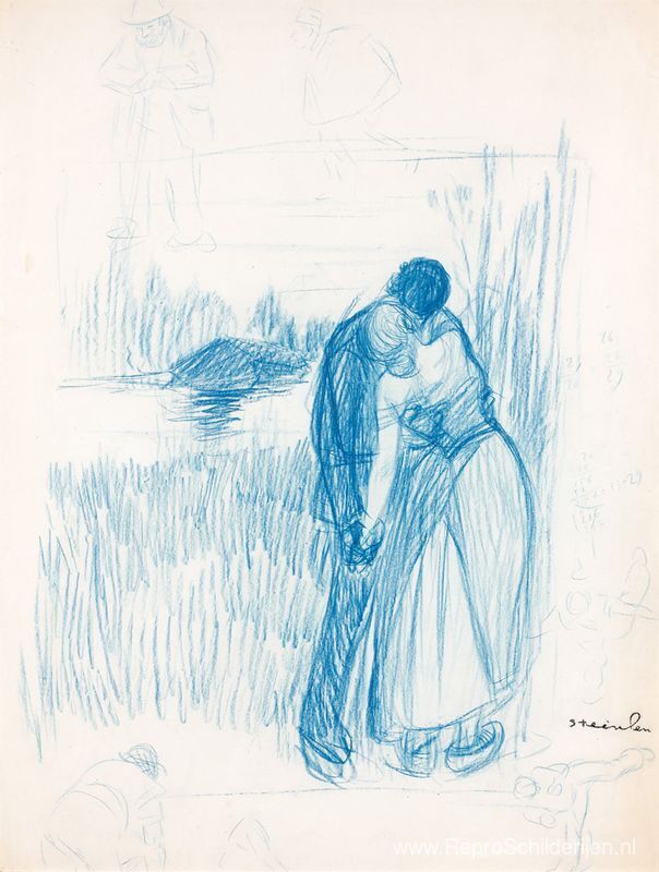Wij bieden u een ambachtelijke reproductie op doek van het beroemde schilderij 'Au Bord de L'Eau Voorlopige tekening' van Theophile Steinlen, afkomstig uit het Reproductiemuseum.