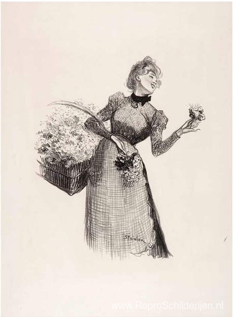 Wij bieden u een ambachtelijke reproductie op doek van het beroemde schilderij 'Bloemenmeisje ' van Theophile Steinlen, afkomstig uit het Reproductiemuseum.