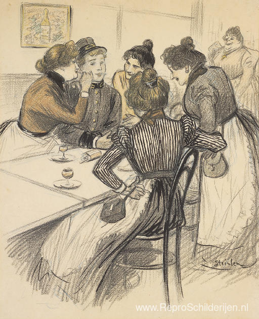 Wij bieden u een ambachtelijke reproductie op doek van het beroemde schilderij 'Brasserie Originele tekening' van Theophile Steinlen, afkomstig uit het Reproductiemuseum.