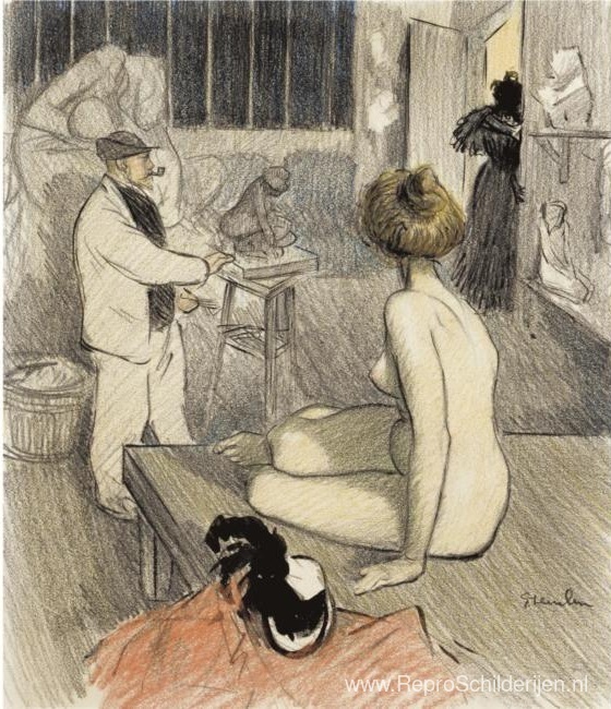 Wij bieden u een ambachtelijke reproductie op doek van het beroemde schilderij 'Coup Double - Originele tekening' van Theophile Steinlen, afkomstig uit het Reproductiemuseum.