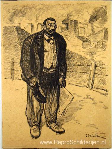 Wij bieden u een ambachtelijke reproductie op doek van het beroemde schilderij 'De eerlijke werker' van Theophile Steinlen, afkomstig uit het Reproductiemuseum.