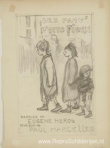 Wij bieden u een ambachtelijke reproductie op doek van het beroemde schilderij 'De Pauv-Petits Fieux' van Theophile Steinlen, afkomstig uit het Reproductiemuseum.