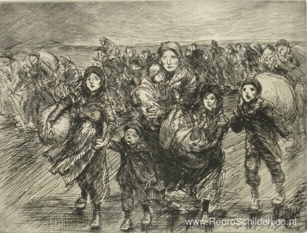 Wij bieden u een ambachtelijke reproductie op doek van het beroemde schilderij 'Devant L'Invasion ' van Theophile Steinlen, afkomstig uit het Reproductiemuseum.