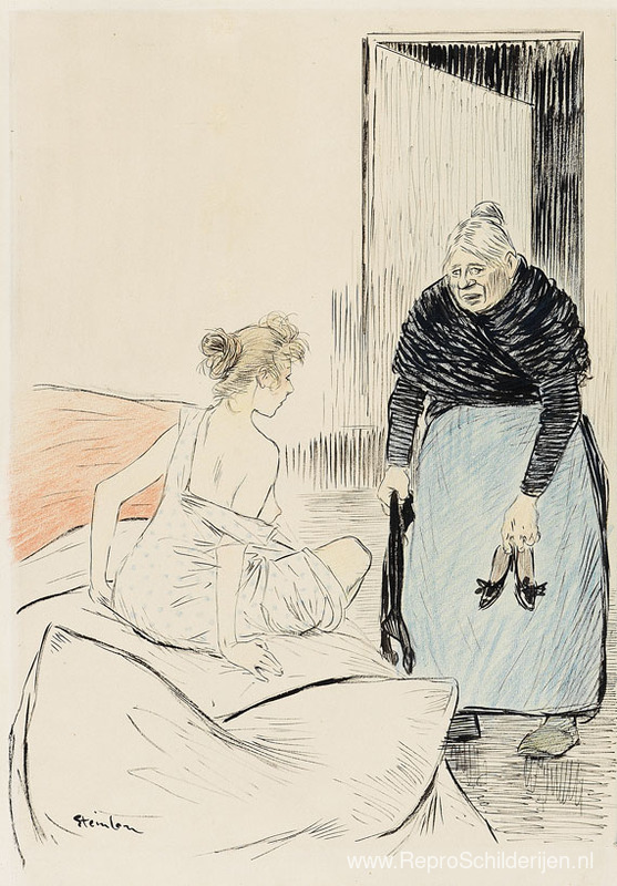 Wij bieden u een ambachtelijke reproductie op doek van het beroemde schilderij 'Doche - originele tekening ' van Theophile Steinlen, afkomstig uit het Reproductiemuseum.