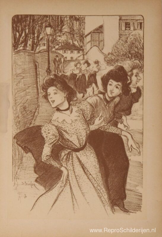 Wij bieden u een ambachtelijke reproductie op doek van het beroemde schilderij 'Drie Midinettes' van Theophile Steinlen, afkomstig uit het Reproductiemuseum.