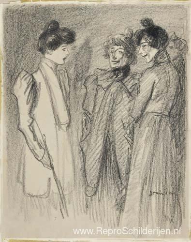 Wij bieden u een ambachtelijke reproductie op doek van het beroemde schilderij 'Drie vrouwen' van Theophile Steinlen, afkomstig uit het Reproductiemuseum.