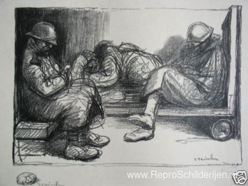 Wij bieden u een ambachtelijke reproductie op doek van het beroemde schilderij 'En Attendant Le Depart ' van Theophile Steinlen, afkomstig uit het Reproductiemuseum.