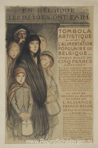 Wij bieden u een ambachtelijke reproductie op doek van het beroemde schilderij 'En Belgiques Les Belges Ont Faim ' van Theophile Steinlen, afkomstig uit het Reproductiemuseum.
