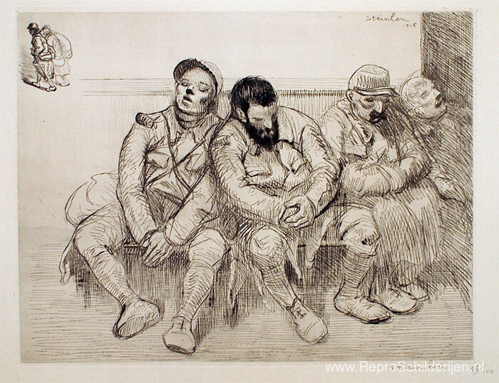 Wij bieden u een ambachtelijke reproductie op doek van het beroemde schilderij 'Entre Deux-treinen ' van Theophile Steinlen, afkomstig uit het Reproductiemuseum.