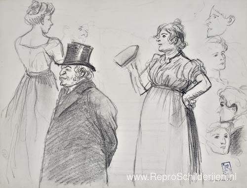 Wij bieden u een ambachtelijke reproductie op doek van het beroemde schilderij 'Etude des Figures' van Theophile Steinlen, afkomstig uit het Reproductiemuseum.