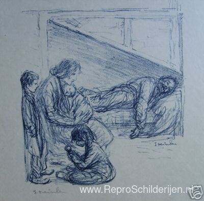 Wij bieden u een ambachtelijke reproductie op doek van het beroemde schilderij 'Familie litho' van Theophile Steinlen, afkomstig uit het Reproductiemuseum.