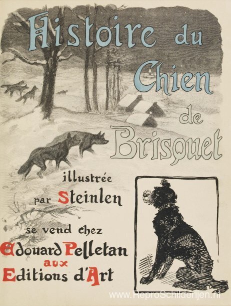 Wij bieden u een ambachtelijke reproductie op doek van het beroemde schilderij 'Geschiedenis van Chien de Brisquet ' van Theophile Steinlen, afkomstig uit het Reproductiemuseum.