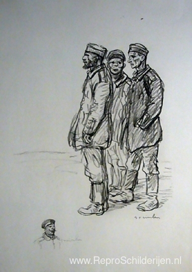 Wij bieden u een ambachtelijke reproductie op doek van het beroemde schilderij 'Gevangenenboches ' van Theophile Steinlen, afkomstig uit het Reproductiemuseum.