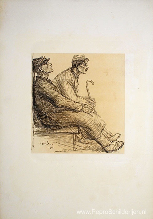 Wij bieden u een ambachtelijke reproductie op doek van het beroemde schilderij 'Herstellende mensen' van Theophile Steinlen, afkomstig uit het Reproductiemuseum.