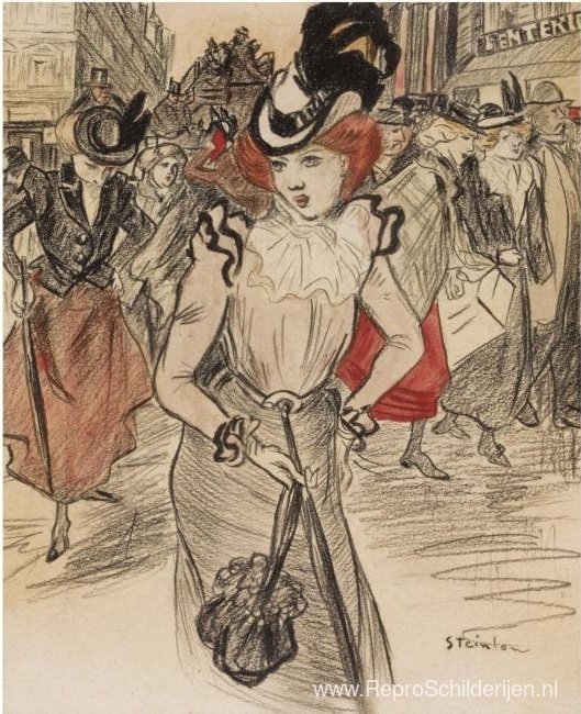 Wij bieden u een ambachtelijke reproductie op doek van het beroemde schilderij 'Hue Cocotte ' van Theophile Steinlen, afkomstig uit het Reproductiemuseum.