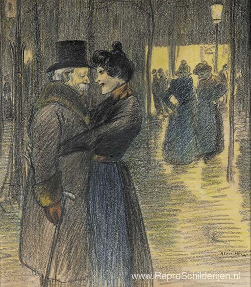 Wij bieden u een ambachtelijke reproductie op doek van het beroemde schilderij 'Ijdelheid van een oude man' van Theophile Steinlen, afkomstig uit het Reproductiemuseum.