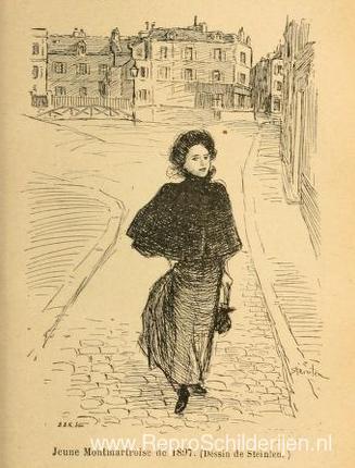 Wij bieden u een ambachtelijke reproductie op doek van het beroemde schilderij 'Illustratie uit Montmartre [par] Georges Renault en Henri Châtea' van Theophile Steinlen, afkomstig uit het Reproductiemuseum.