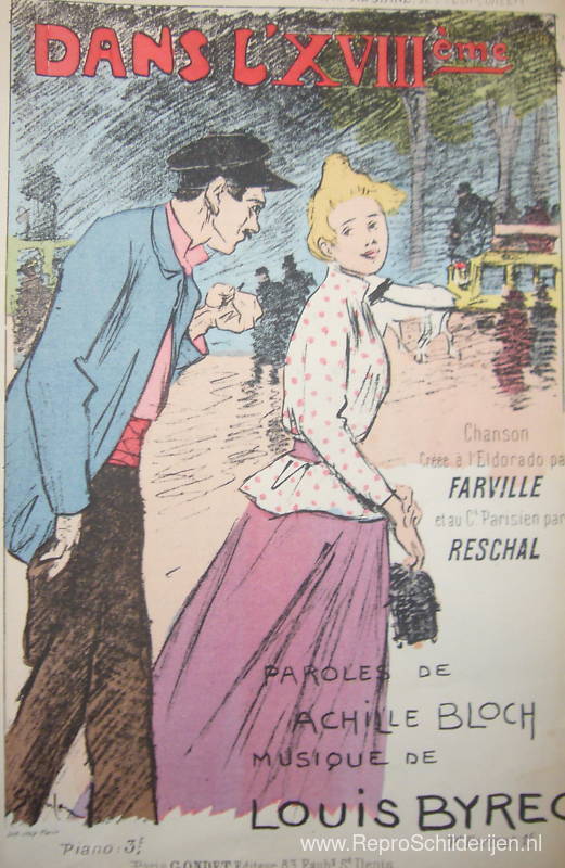 Wij bieden u een ambachtelijke reproductie op doek van het beroemde schilderij 'In de 18e eeuw' van Theophile Steinlen, afkomstig uit het Reproductiemuseum.