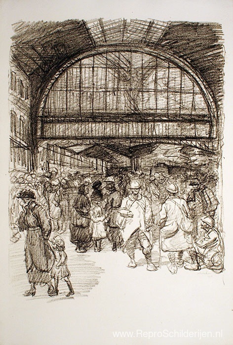Wij bieden u een ambachtelijke reproductie op doek van het beroemde schilderij 'In de hal' van Theophile Steinlen, afkomstig uit het Reproductiemuseum.
