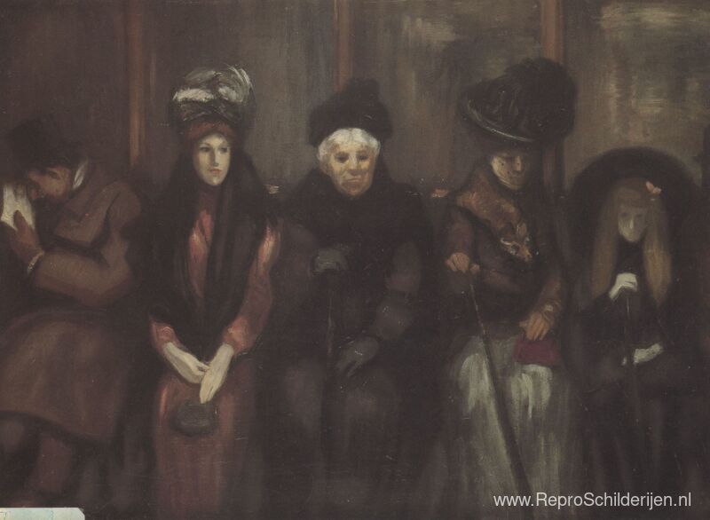 Wij bieden u een ambachtelijke reproductie op doek van het beroemde schilderij 'In de Tram' van Theophile Steinlen, afkomstig uit het Reproductiemuseum.
