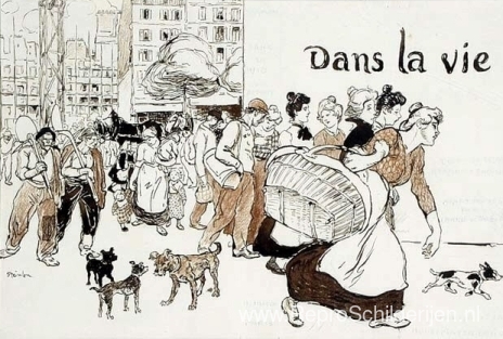 Wij bieden u een ambachtelijke reproductie op doek van het beroemde schilderij 'In het leven' van Theophile Steinlen, afkomstig uit het Reproductiemuseum.