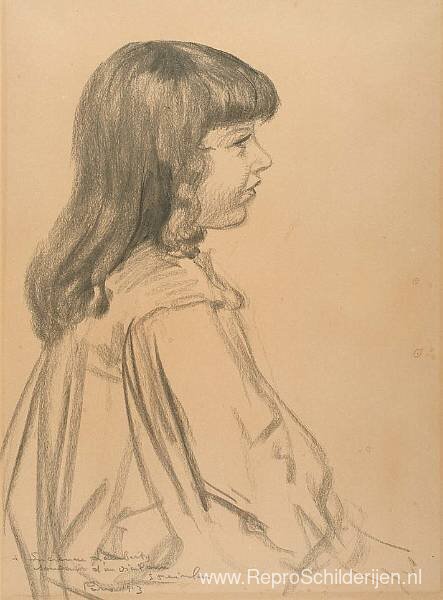 Wij bieden u een ambachtelijke reproductie op doek van het beroemde schilderij 'Jong meisje ' van Theophile Steinlen, afkomstig uit het Reproductiemuseum.