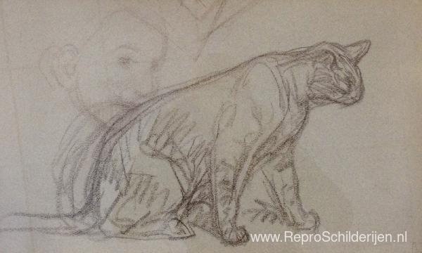 Wij bieden u een ambachtelijke reproductie op doek van het beroemde schilderij 'Kat schets' van Theophile Steinlen, afkomstig uit het Reproductiemuseum.