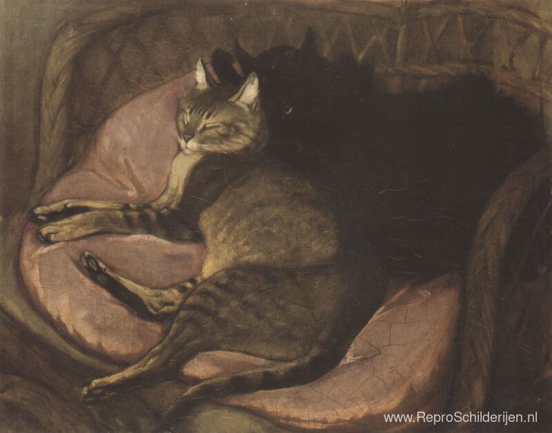 Wij bieden u een ambachtelijke reproductie op doek van het beroemde schilderij 'Katten op de bank' van Theophile Steinlen, afkomstig uit het Reproductiemuseum.