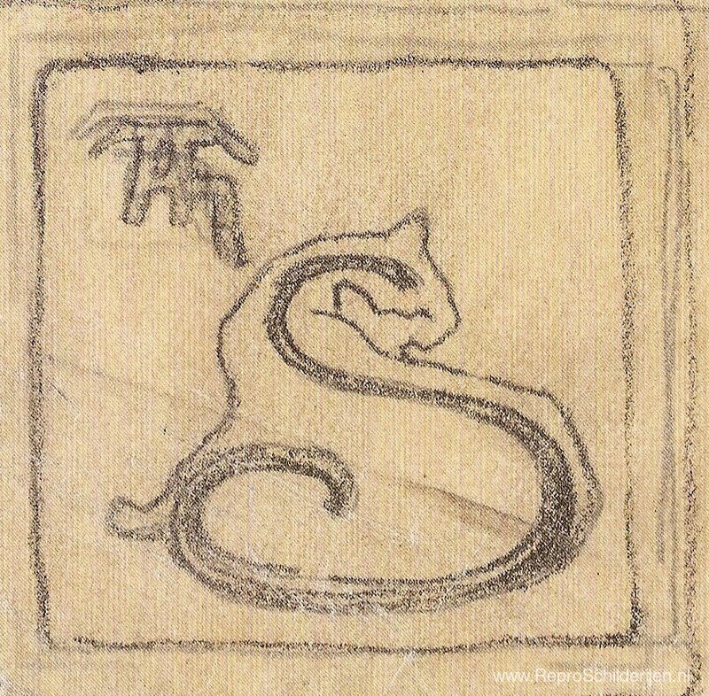 Wij bieden u een ambachtelijke reproductie op doek van het beroemde schilderij 'Kattenmonogram' van Theophile Steinlen, afkomstig uit het Reproductiemuseum.