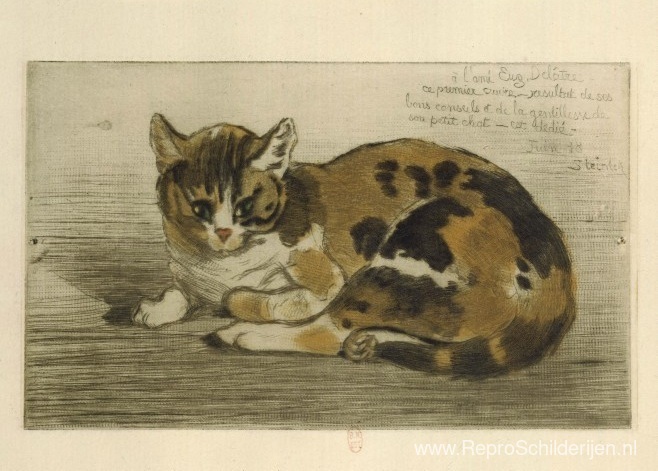 Wij bieden u een ambachtelijke reproductie op doek van het beroemde schilderij 'Kleine kat' van Theophile Steinlen, afkomstig uit het Reproductiemuseum.