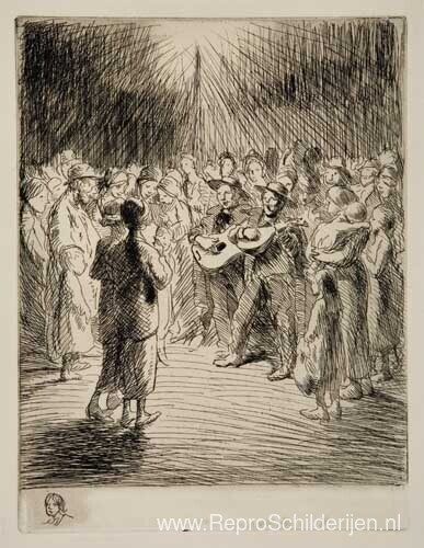 Wij bieden u een ambachtelijke reproductie op doek van het beroemde schilderij 'Kleine zangers uit de Swannstraat' van Theophile Steinlen, afkomstig uit het Reproductiemuseum.