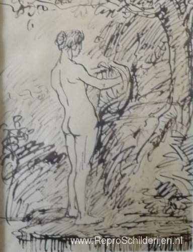 Wij bieden u een ambachtelijke reproductie op doek van het beroemde schilderij 'La Baigneuse ' van Theophile Steinlen, afkomstig uit het Reproductiemuseum.