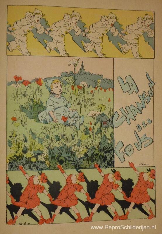 Wij bieden u een ambachtelijke reproductie op doek van het beroemde schilderij 'La Chanson des Fous ' van Theophile Steinlen, afkomstig uit het Reproductiemuseum.