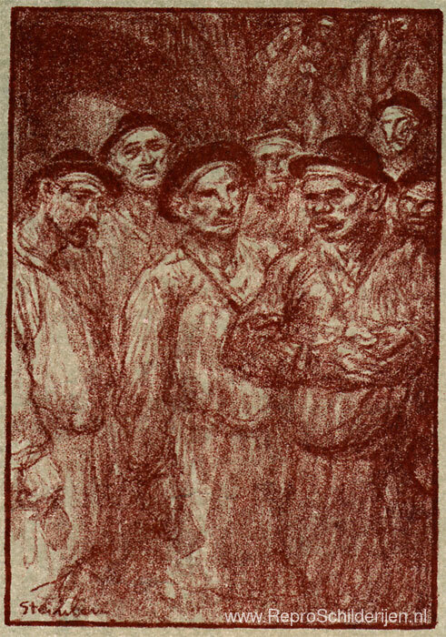 Wij bieden u een ambachtelijke reproductie op doek van het beroemde schilderij 'La Descente' van Theophile Steinlen, afkomstig uit het Reproductiemuseum.