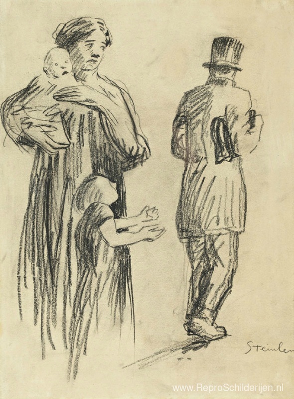 Wij bieden u een ambachtelijke reproductie op doek van het beroemde schilderij 'La famille indigente ' van Theophile Steinlen, afkomstig uit het Reproductiemuseum.
