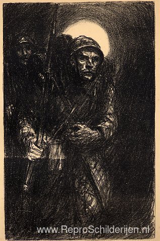 Wij bieden u een ambachtelijke reproductie op doek van het beroemde schilderij 'La Guerre ' van Theophile Steinlen, afkomstig uit het Reproductiemuseum.